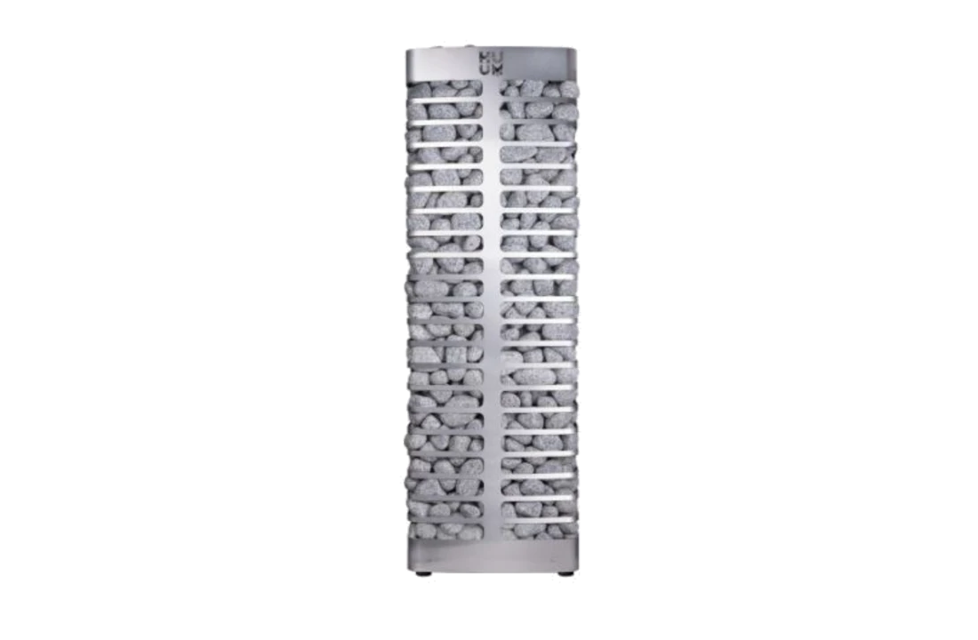 De Huum Steel is een smalle elektrische saunakachel met opmerkelijk kleine veiligheidsafstanden, waardoor hij perfect is voor sauna’s met beperkte ruimte. Dankzij de geoptimaliseerde structuur zijn de veiligheidsafstanden tot de wanden slechts 5 cm bij kleinere modellen en 10 cm bij grotere modellen. Steel kachel is er ook in een nog smallere 3,5 kW wandmodel, dat bijzonder geschikt is voor zeer kleine saunaruimtes. De kleine veiligheidsafstanden worden bereikt door de structuur en de plaatsing van de interne luchttunnel te optimaliseren. De compactheid gaat echter niet ten koste van de efficiëntie. De in het midden van de kachel geplaatste interne luchttunnel zorgt voor een doeltreffende luchtstroom, versnelt het verwarmingsproces met 25% en verlengt de levensduur van de verwarmingselementen.