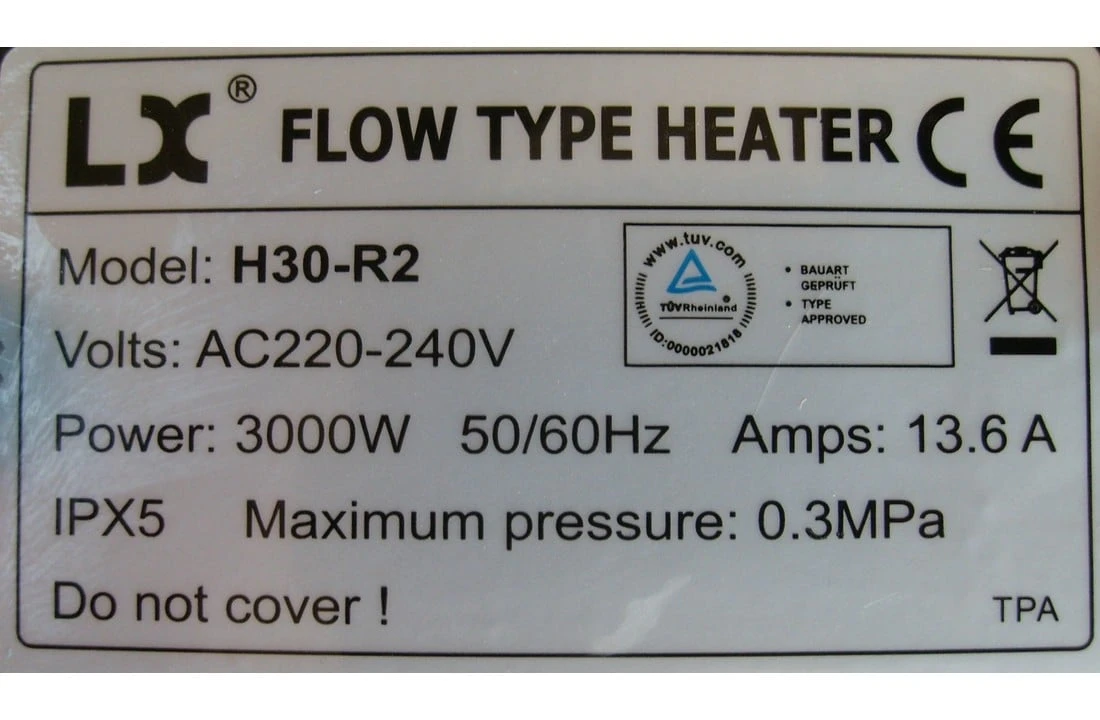 LX H30-R2 3.0KW 1.5 inch Spa heater (L-Vorm)