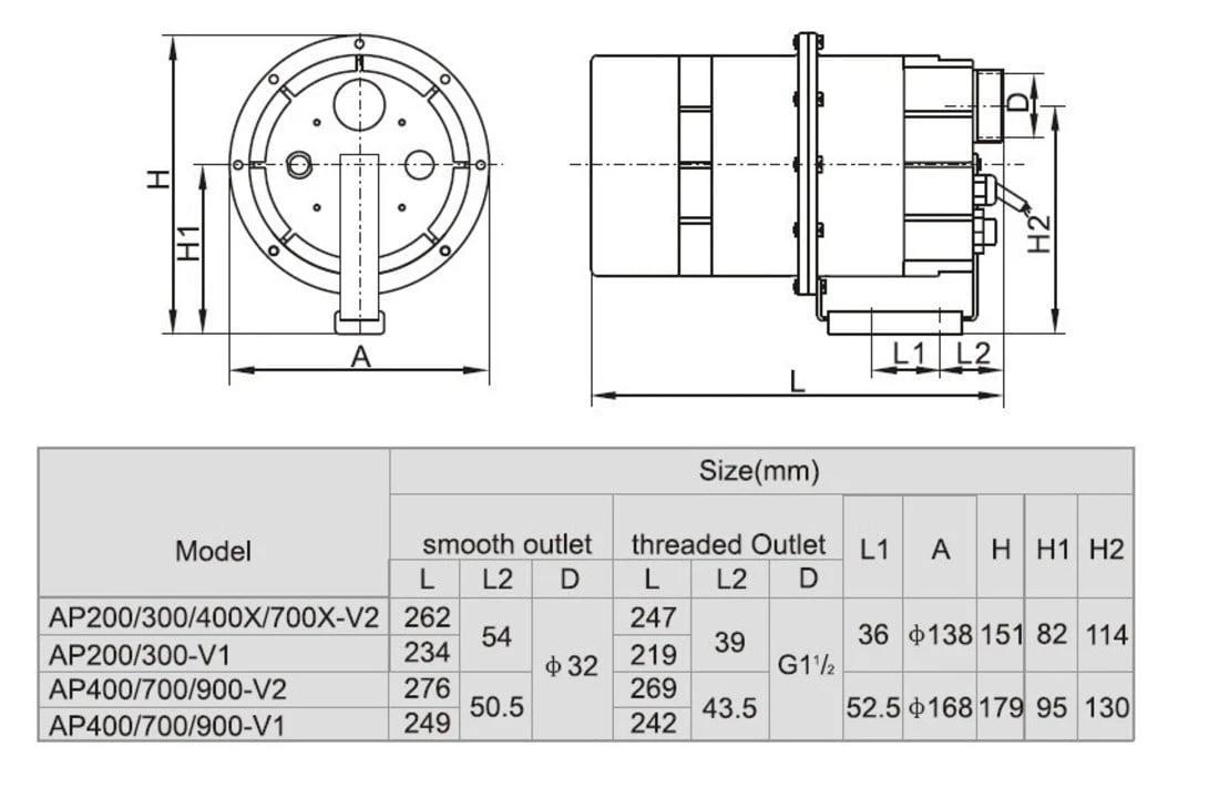AP200-V2 grootte: 245 x 110 x 150 mm