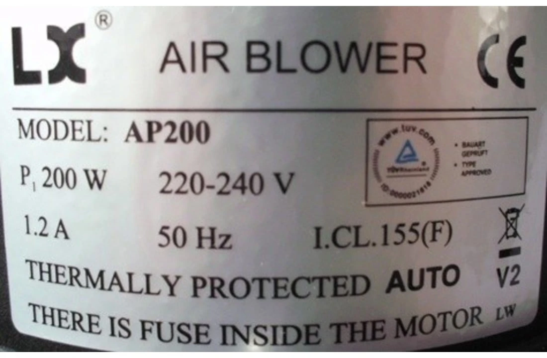 LX AP200 Lucht Pomp Blower voor Jacuzzi, spa en bubbelbad