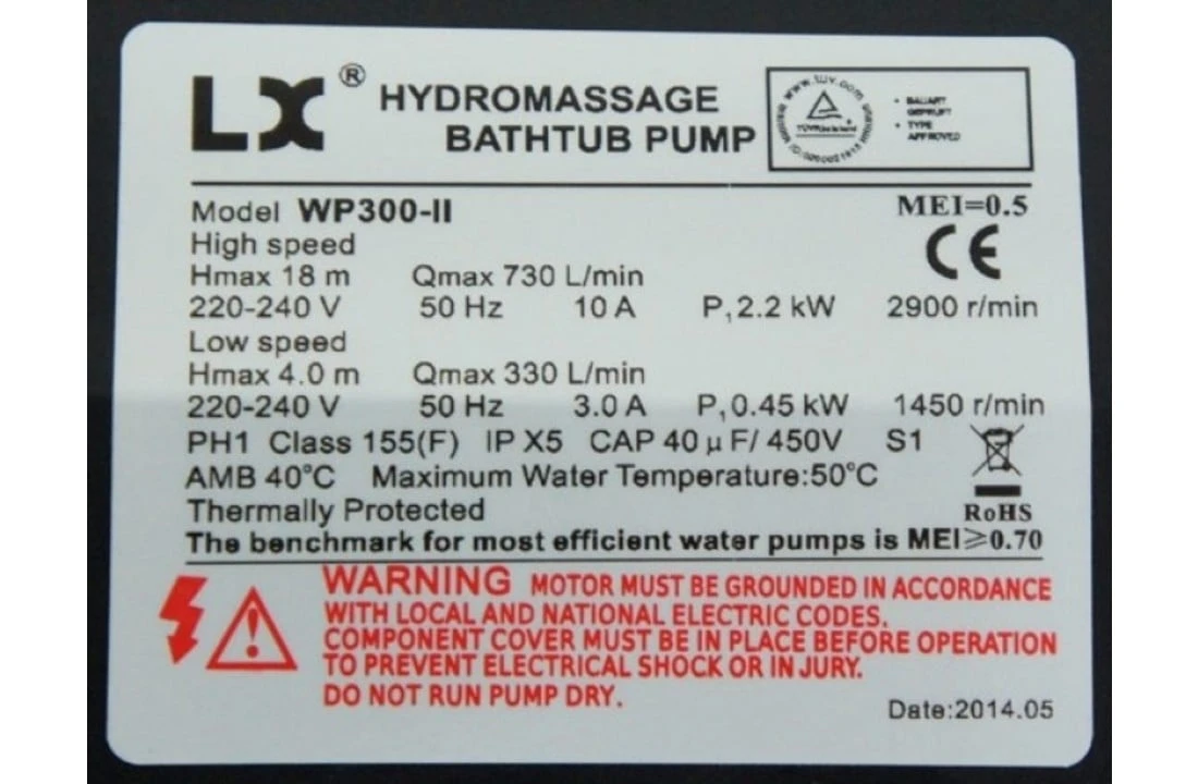 LX WP300-II Massage Pomp 2-spd 3,0hp