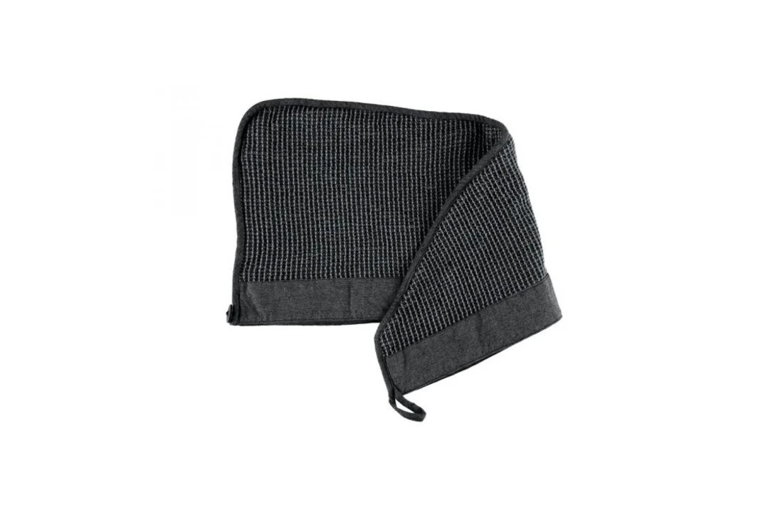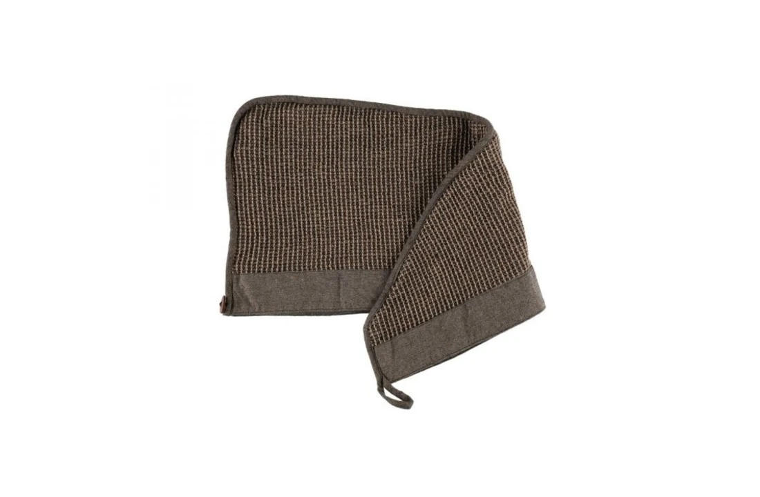 Een absorberende haarhanddoek droogt je haar zachtjes en beschermt in een sauna, hot tub of gezichtsbehandeling. Een mooie bevestigingsknop is gemaakt van kokosnootschaal. Kenno saunatextiel is gemaakt van gerecycled katoen, waardoor de stof een natuurlijke zachtheid en levendige textuur heeft. De brede chambray rand is een gezellige maar elegante finishing touch.
