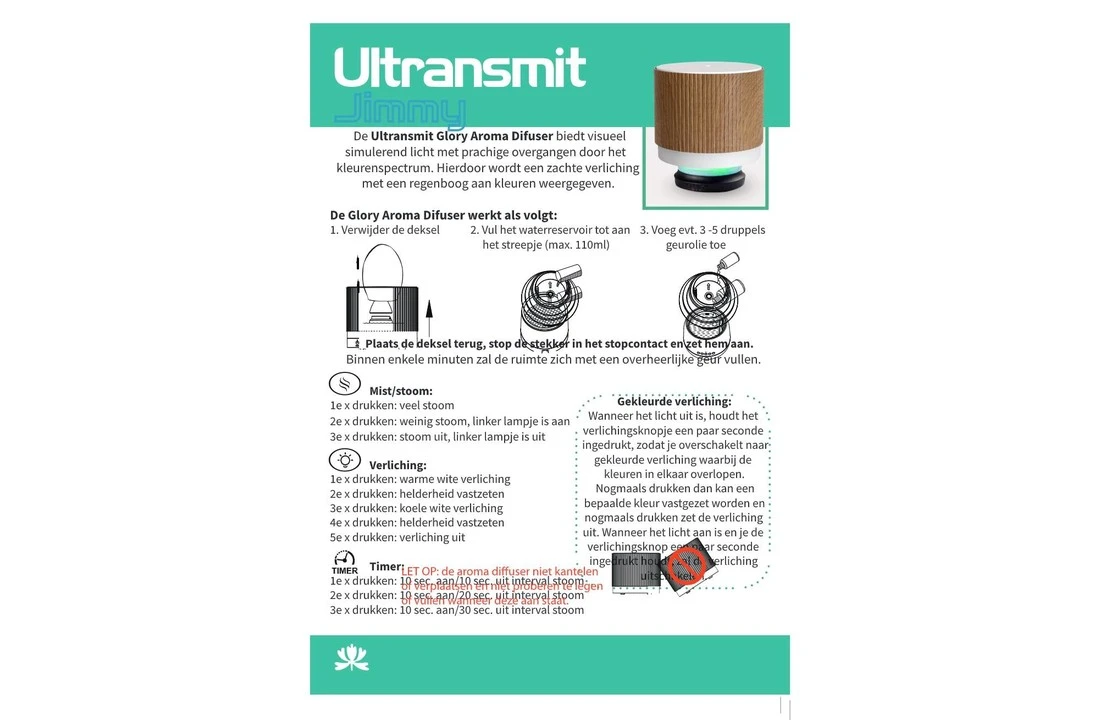 De Ultransmit Aroma Diffuser is uitstekend geschikt voor het verdampen van aromatische olie. Dit verdampen gebeurt door middel van een koude nevel. De Aroma Diffuser is uitstekend te gebruiken voor in huis, kantoor-, salon- of praktijkruimte.